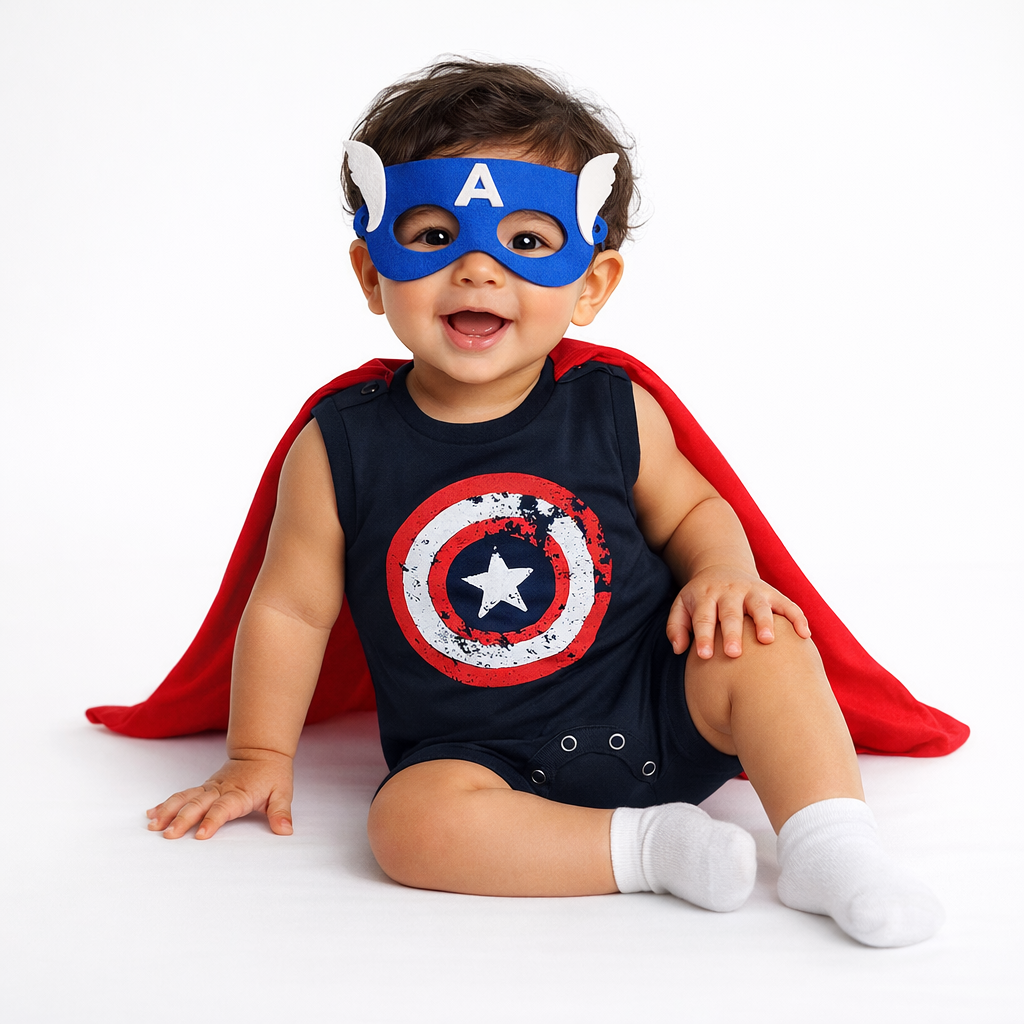 Macaquinho Curto + Capa + Mascara - CAPITÃO AMERICA
